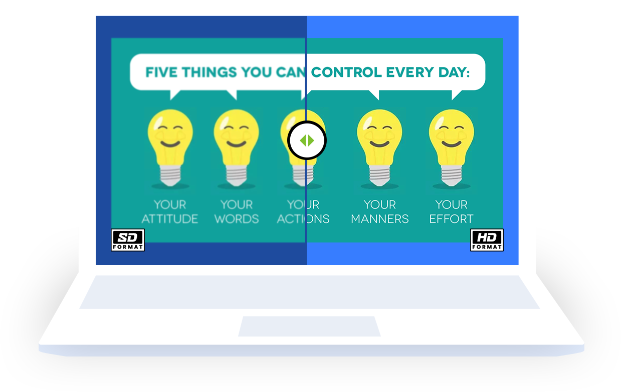 Export your videos in various mp4 qualities from web-ready, all the way to HD