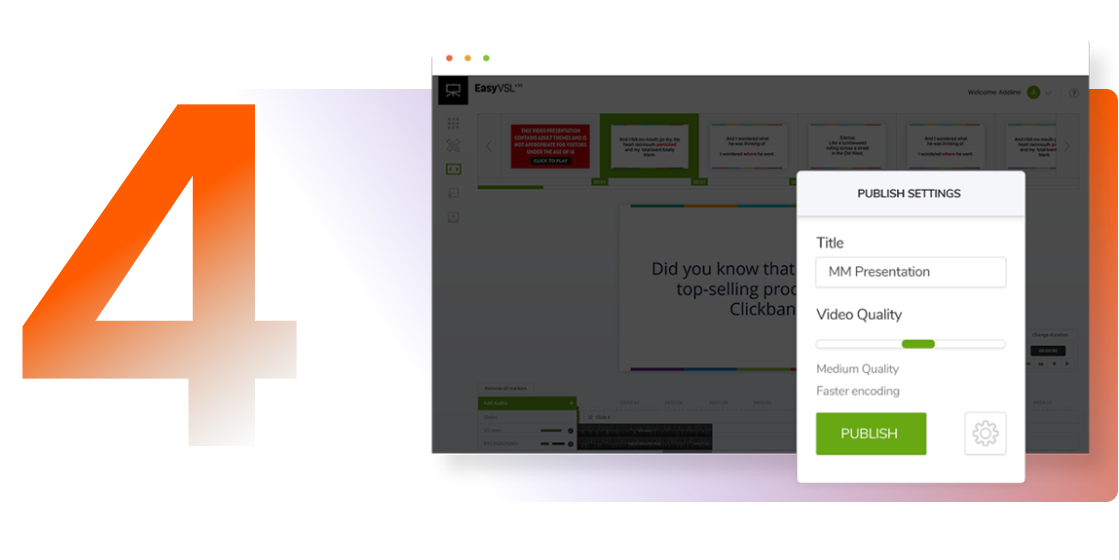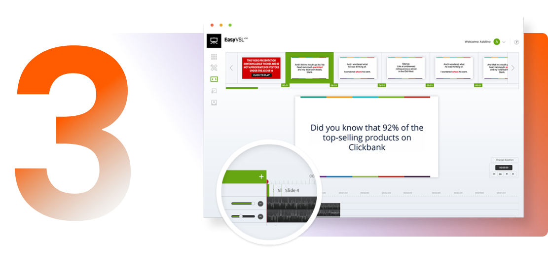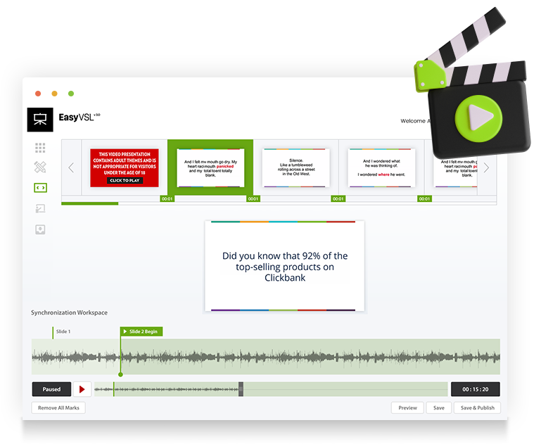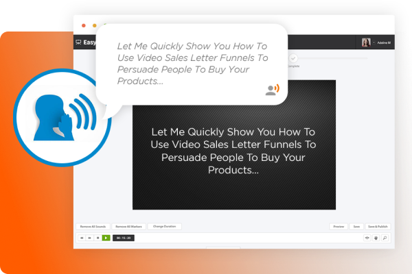 No More Manually Syncing Your Video Slides with Your Voiceover Audio! Using our built-in speech recognition and intelligence feature, EasyVSL can automatically sync your entire voiceover audio to your slides… transitioning the slides at the perfect time!