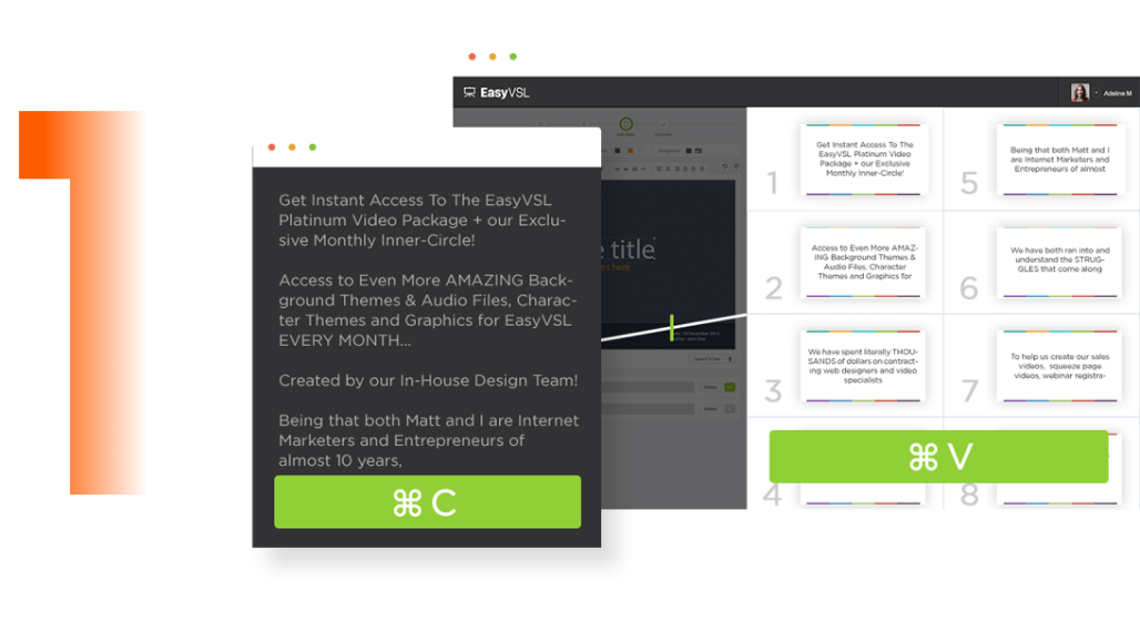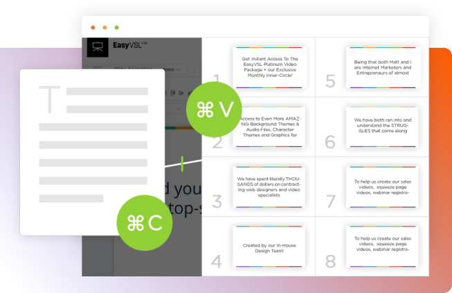 Paste in your video script and let EasyVSL generate your slide presentation for you automatically, eliminating the need to manually enter content slide by slide.